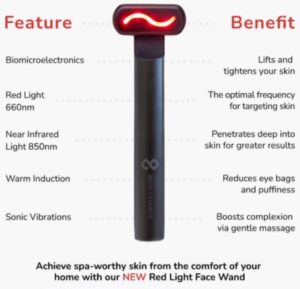 With its ergonomic design, it effortlessly glides across the face, sculpting and lifting while delivering targeted red (660nm) light and near infrared (850nm) light to problem areas.